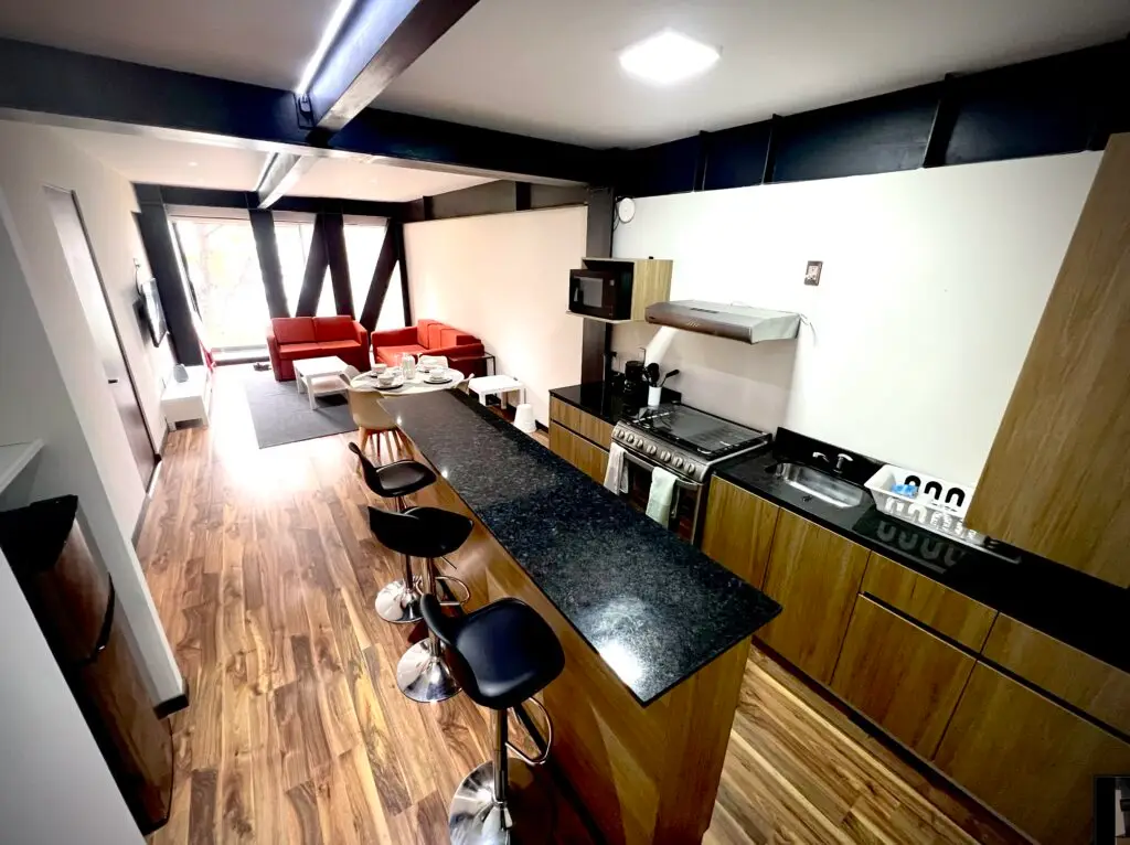 Nuestros espacios ofrecen seguridad 24 horas, estamos ubicados en una de las Alcaldías más seguras de la CDMX. Recepción personalizada, dos recámaras, dos baños, cocina equipada, Smart TV, internet de alta velocidad y estacionamiento.